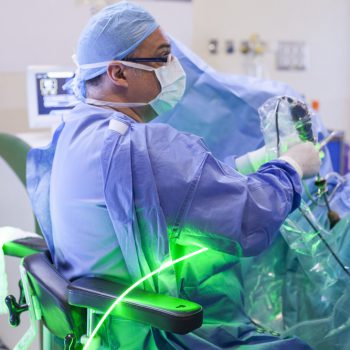 For prostate cancer surgery, we are proud to have with us Dr. Richard Gaston, the first surgeon to perform laparoscopic radical prostatectomies and the one with the most experience in robotic surgery in urology. His exclusivity agreement with Clínica CEMTRO means it is here where he carries out his surgery and academic activity, while sharing and transmitting his knowledge and skills to Dr. Fernando Gómez Sancha and his team.